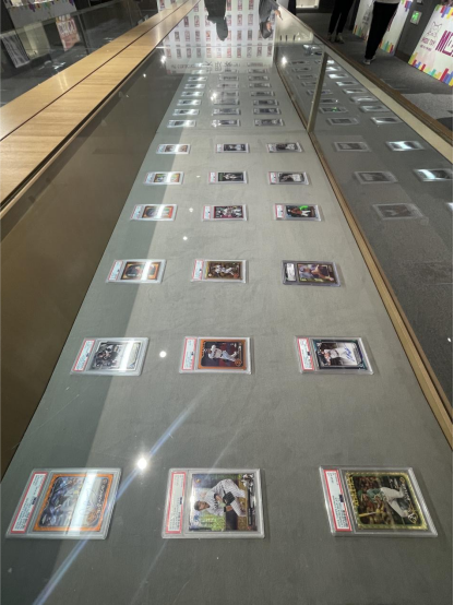 收藏卡类展品有PSA10分的足球、篮球、UFC等体育类明星卡,宝可梦、航海王、等动漫TCG对战收藏卡,还有LPL、KPL等电竞类收藏卡。参展商们展示的每一件展品都让观众眼前一亮,大家纷纷拿起手机拍照合影,现场气氛热烈而兴奋。