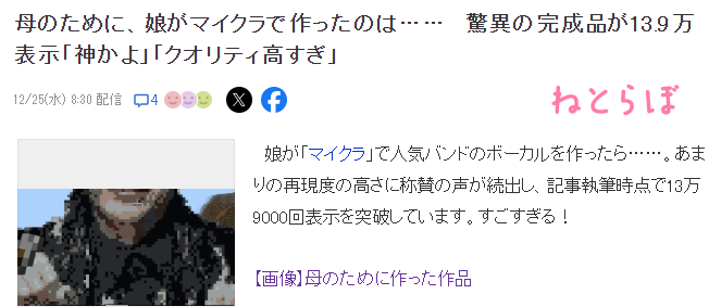 近日一位女玩家“猫之华”分享了自己的惊喜,是女儿居然在《我的世界》为自己打造了最喜爱的偶像巨型雕塑,网友惊叹实在太像了。