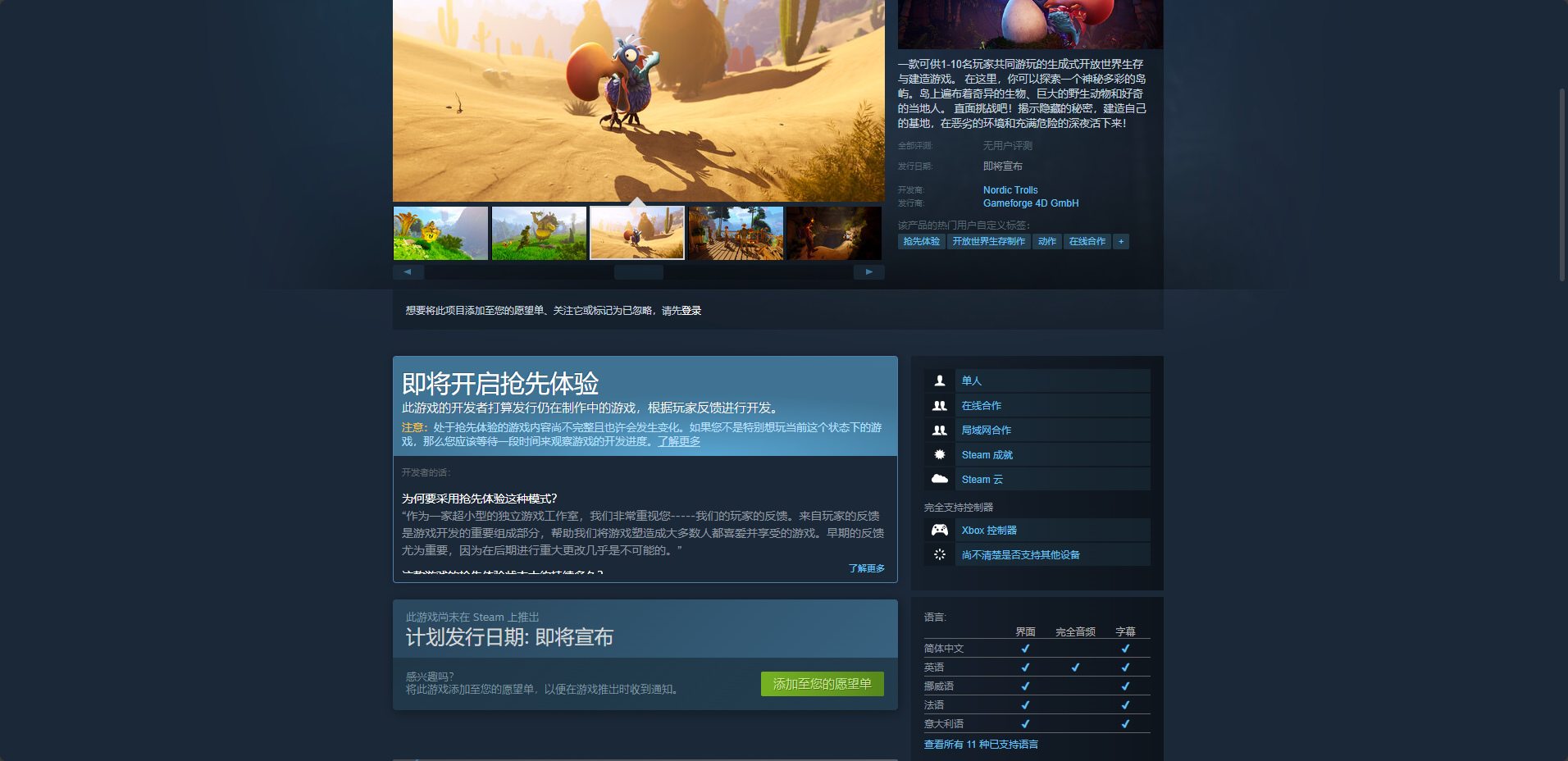 该游戏已经登录了Steam平台和其他平台但发售日期还未确定,只写明了即将推出。预计2025年上线。