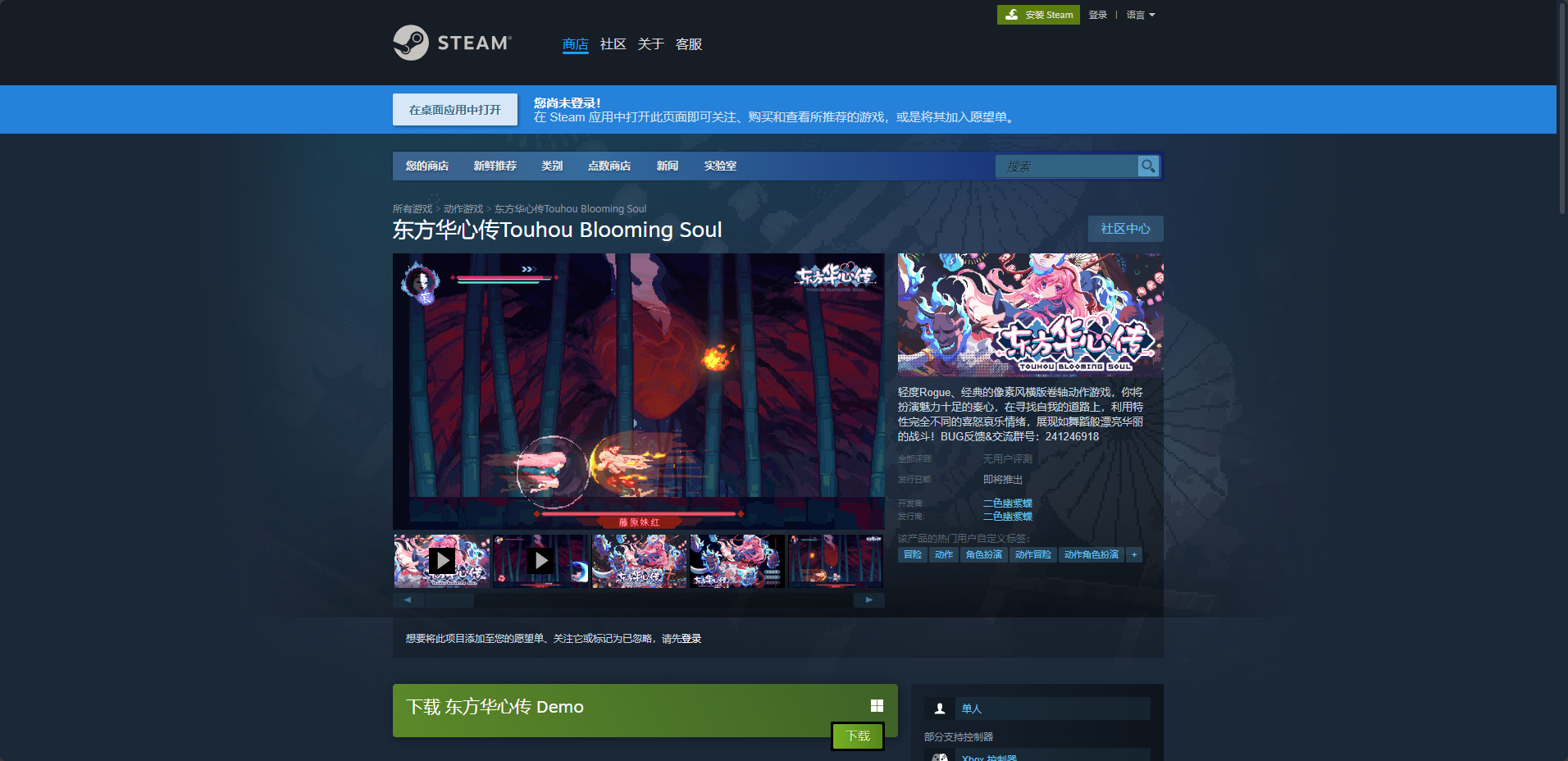 《东方华心传》是一款轻度Rogue、经典的像素风横版卷轴动作游戏,而这款游戏的官网地址就是Steam平台的购买页面,进入到这个游戏的购买页面基本上就能知道所有这款游戏的信息。