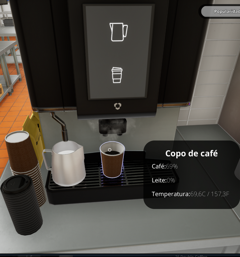 《快餐模拟器》中的咖啡是游戏里非常重要的饮品,而咖啡的种类有很多,普通咖啡就是其中一种,想要制作普通咖啡的话可以点击一次咖啡按钮(最下面的那个),它将填充到杯子的70%即可。