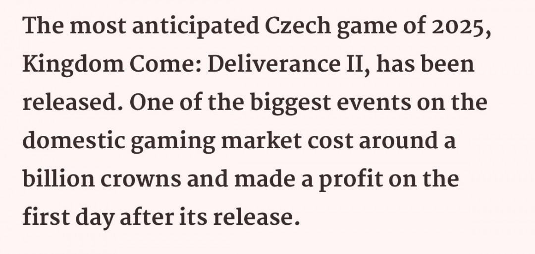 根据捷克媒体报道,《天国:拯救2》成本只有4100万美元: