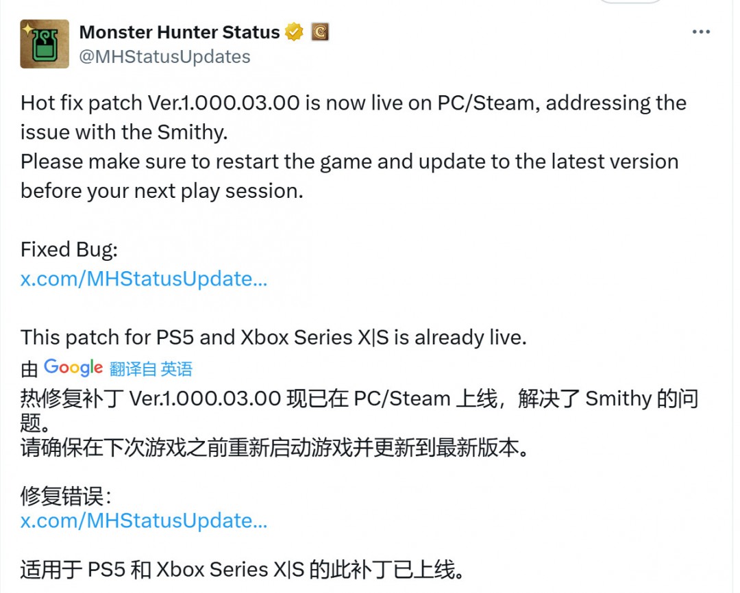 不过,好消息是,该问题已经得到解决,官方已经推出了热修复补丁Ver.1.000.03.00,修复了铁匠铺问题。玩家可以重启游戏,升级到最新版本。