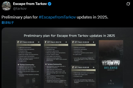 Battlestate Games工作室今天宣布,旗下好评战术射击逃离类好评游戏《逃离塔科夫》2025年将正式推出1.0版,结束长达8年的测试历程。