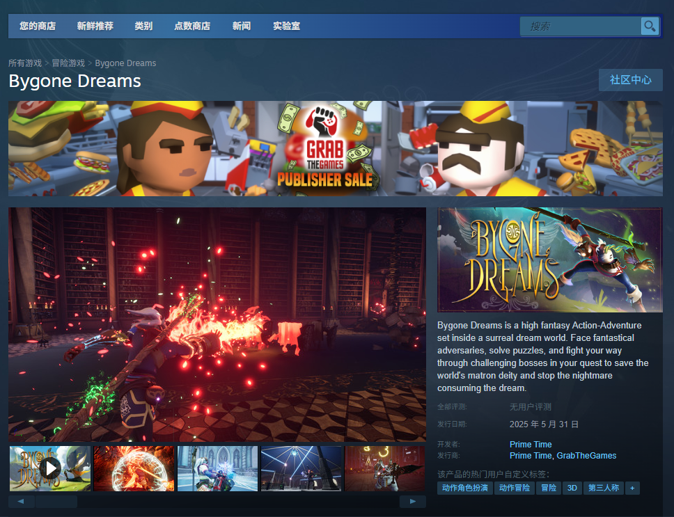 《往昔遗梦(Bygone Dreams)》是Prime Time制作并发行的一款古典奇幻动作冒险游戏。而这款游戏的官网地址就是Steam平台的购买页面,进入到这个游戏的购买页面基本上就能知道所有这款游戏的信息。