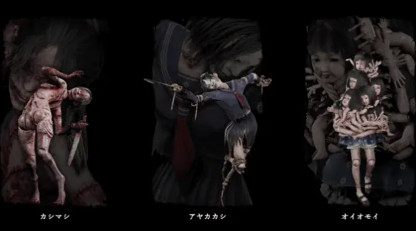 浑身披血的KASHIMASHI。穿着学生校服手持镰刀的AYAKAKASHI。一堆玩偶的凝结体OIOMOI和长有彼岸花的巨大肉块ARAABARE。