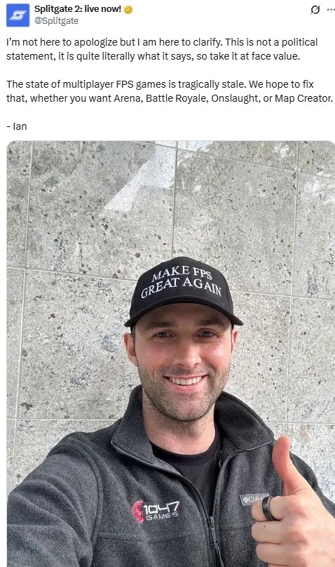 Games首席执行官兼联合创始人伊恩·普劳克斯亲自登台宣布这一消息,并同时抨击了射击游戏的现状。但几乎立刻,观众对这段展示的反应与其说是围绕《分裂之门2》,不如说是集中在普劳克斯奇特的时尚选择上——他戴着一顶黑色的“让FPS再次伟大”(MAKE