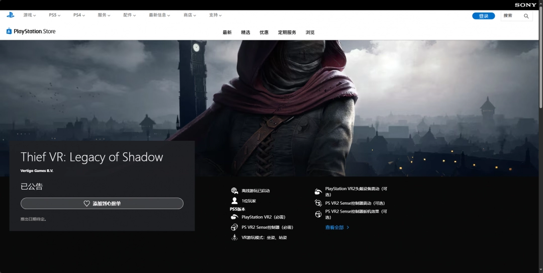 《神偷VR:暗影传承》是由Eidos-Montréal、Vertigo Games与Maze Theory联合打造的VR独占潜行游戏。而这款游戏的官网地址就是一个官网页面,另外Steam平台的购买页面也算官网,进入到这个游戏的购买页面基本上就能知道所有这款游戏的信息。