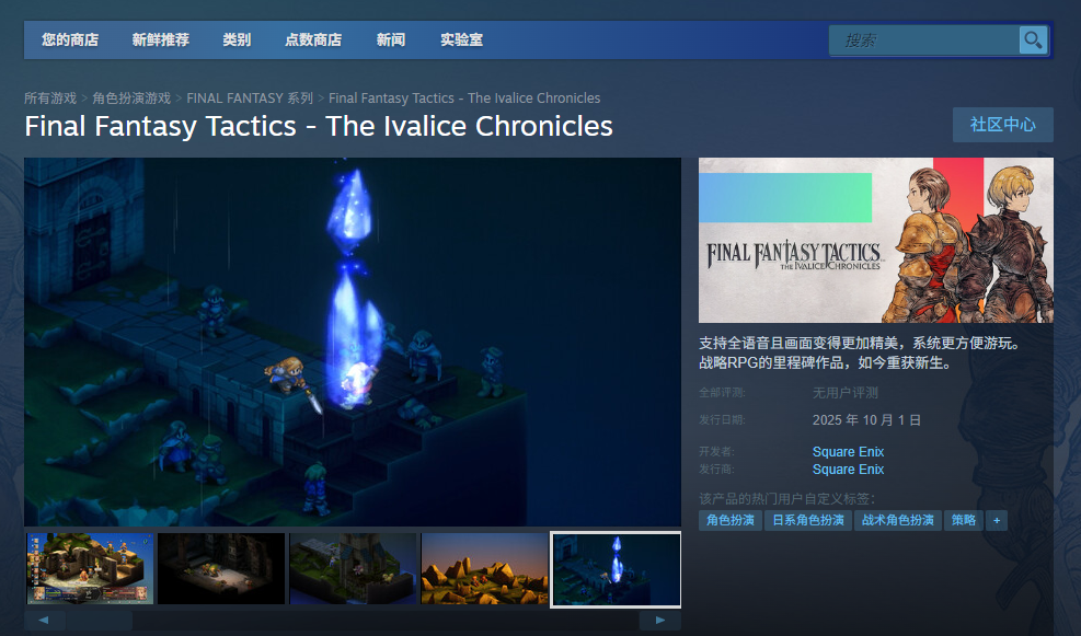 Steam平台购买链接:https://store.steampowered.com/app/1004640/Final_Fantasy_Tactics__The_Ivalice_Chronicles/。