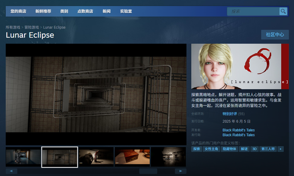 可以去Steam平台下载,地址是:https://store.steampowered.com/app/2953480/Lunar_Eclipse/。