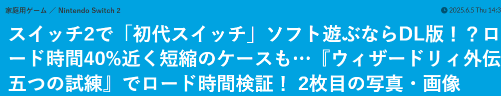 ·根据之前的情报,任天堂曾表示即使不是二代主机专用游戏,游戏加载速度也会特省,于是媒体找来了目前正在热卖的一代游戏《巫术外传:5个试练》做测试。