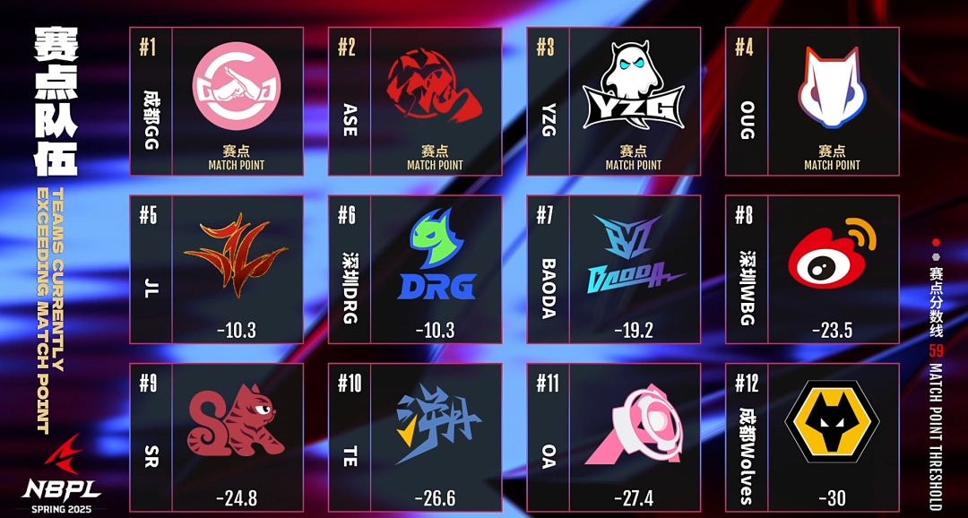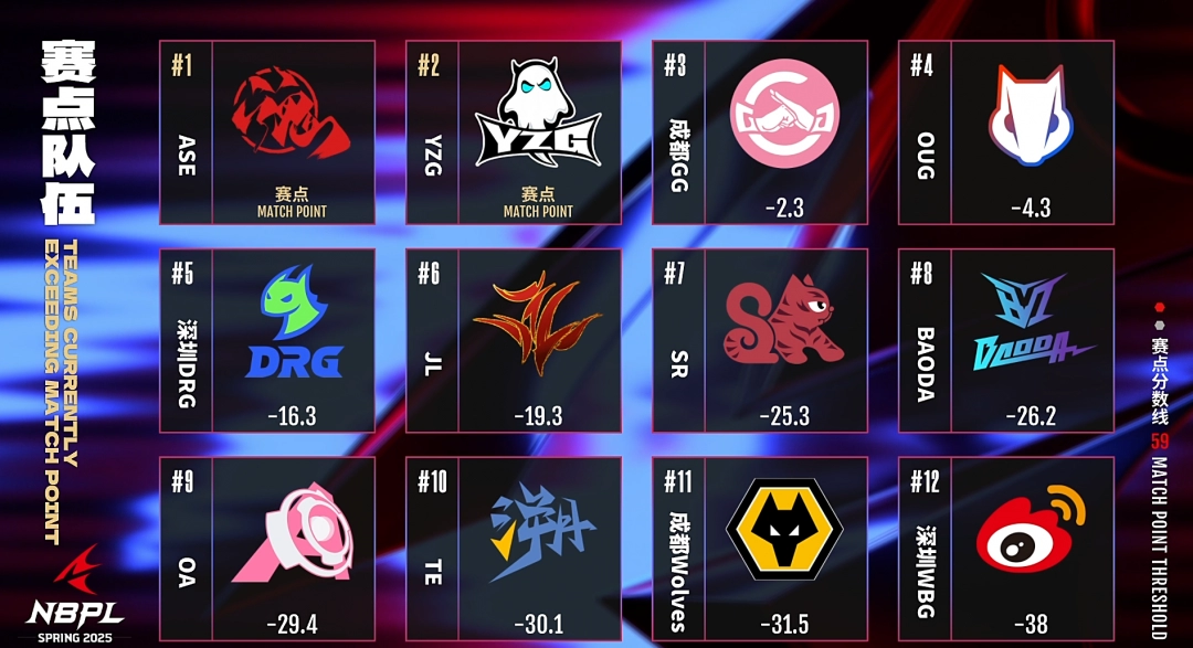 第五局结束,此时场上已经有成都GG、ASE、YZG和OUG四个队伍开启赛点,赛况焦灼。