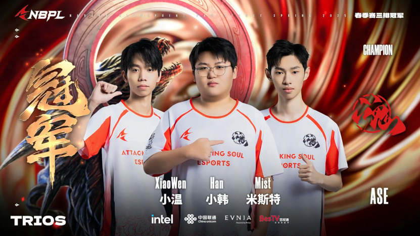 2025永劫无间NBPL春季赛单排总决赛三排冠军诞生!让我们再次恭喜ASE.XiaoWen(小温)、ASE.Mist(米斯特)、ASE.Han(小韩)!