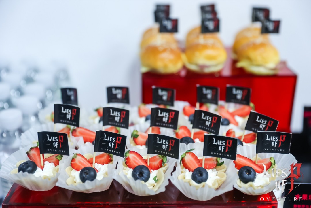 试玩会场地布置了充满《匹诺曹的谎言》游戏元素的展品,玩家们纷纷前往拍照打卡。现场主办方还为来到现场的每一位玩家准备了玫瑰,以及精致的茶歇甜点,让玩家在试玩的间歇能够互相交流游戏体验,享受一段轻松惬意的时光。