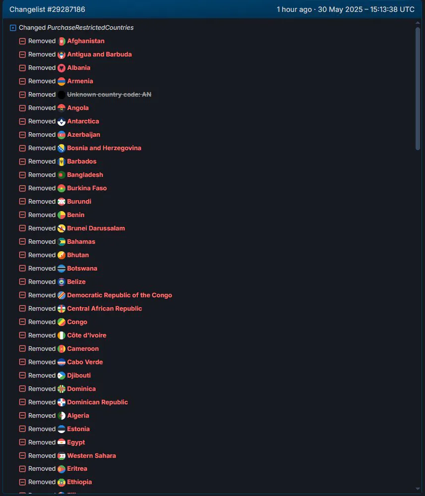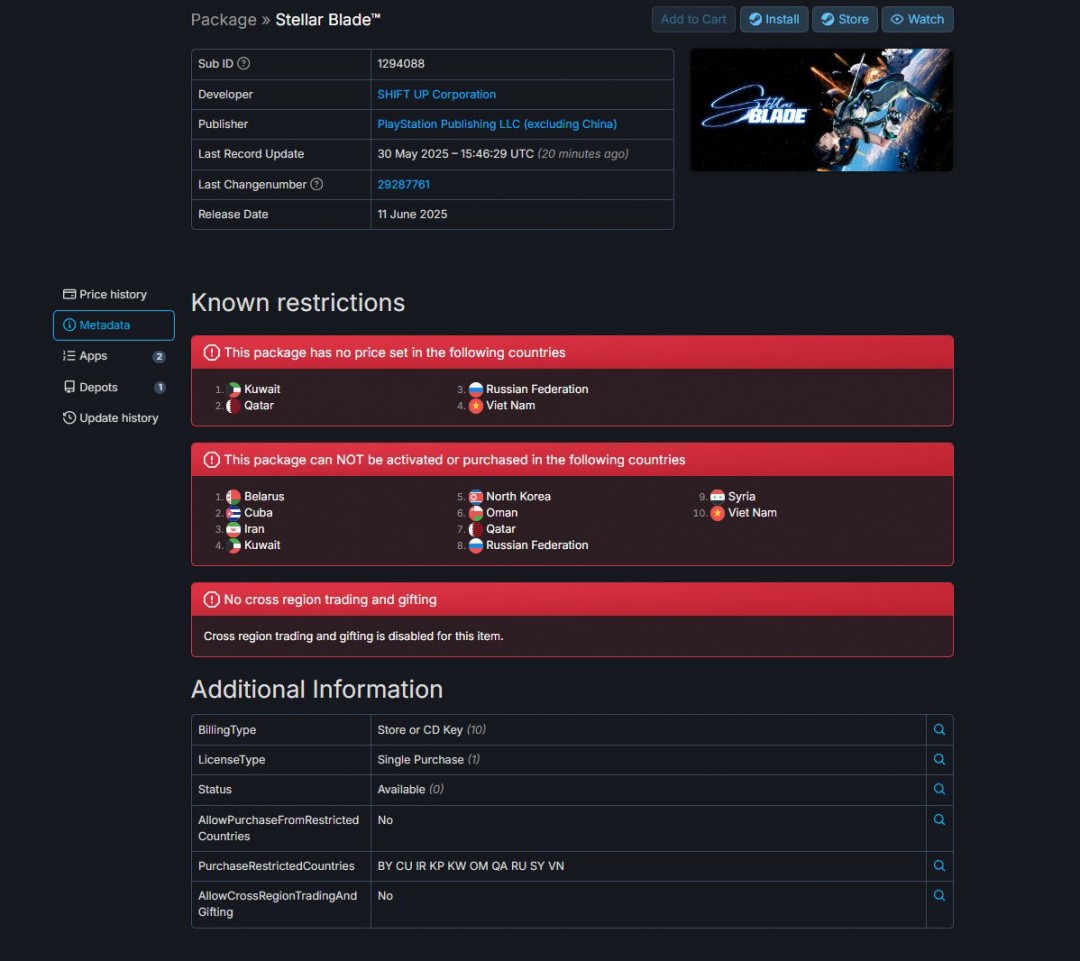 根据SteamDB的最新更新,作为发行商的索尼已经解锁了《剑星》的区域锁定,目前Steam上超100多个国家可以购买这款游戏,比如菲律宾、埃及、爱沙尼亚、阿尔巴尼亚等国家。