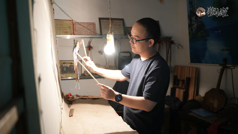 在采访的过程中,张华州也谈到了如今非遗传承的经典命题,作为家族传承式的皮影技艺,张嘉效从小耳濡目染,幼时就对皮影产生了极大的兴趣。张华州起初并不想让儿子跟随自己学习,“皮影最难的就是雕刻,而雕刻是枯燥且乏味的,往往需要大量的练习,才能获得一张完整的成品。”然而张嘉效的一番剖白,最终让张华州下定决心,将皮影技艺传承给了儿子。“如果人生不能从事自己爱好的事业,那还有什么意思?”