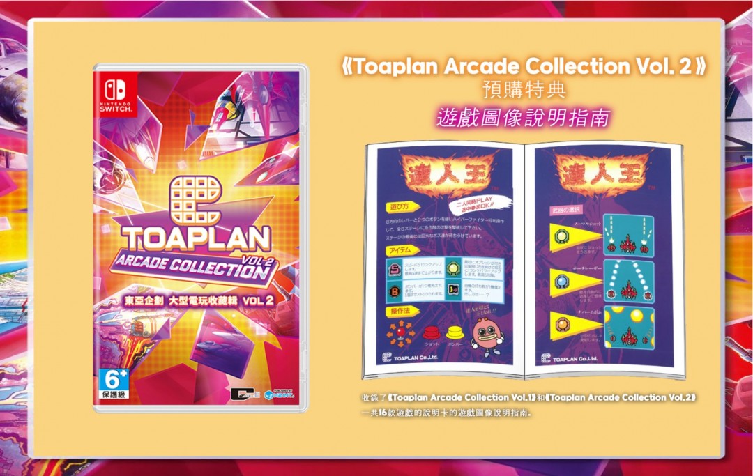 大型电玩收藏辑 Vol.1)》和《Toaplan Arcade Collection Vol.2(东亚企划 大型电玩收藏辑 Vol.2)》PS4/PS5/Nintendo Switch 数位版。另外,将于 8月 28日正式发售的Nintendo Switch 实体版也已开始预购。