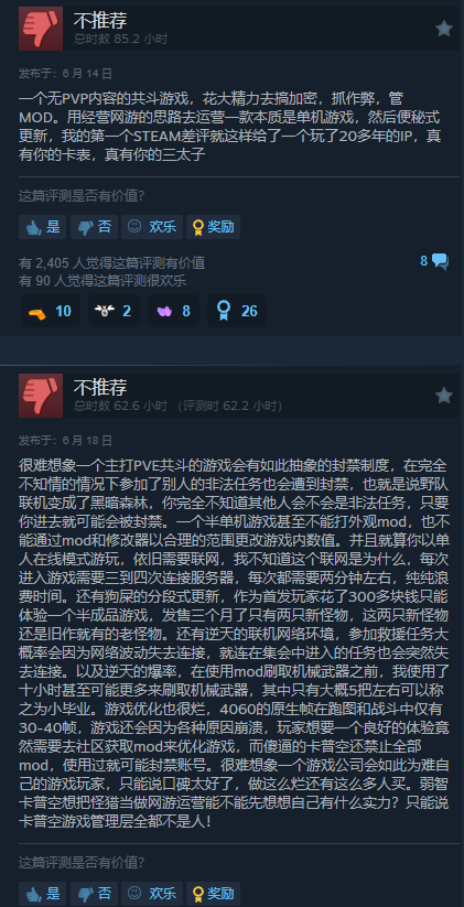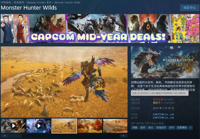 除了官推,Steam社区的情况也不容乐观。截止目前,《怪物猎人:荒野》的好评率已经跌至12%“差评如潮”,低于《三国杀》13%。玩家普遍表达了自己对卡普空运营的种种不满。