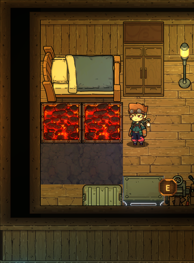 复活指血量归零后读档复活,而非摔下悬崖后复位,可以脱掉装备后使用床和火地板刷取,注意被火地板烫死后重生到火地板上后并不会继续被烫,而需要离开火地板范围再重新进入。可以采用下图方式,重生后按两下e上床下床,重新被烫死,然后循环。嫌麻烦可以配合按键精灵使用。