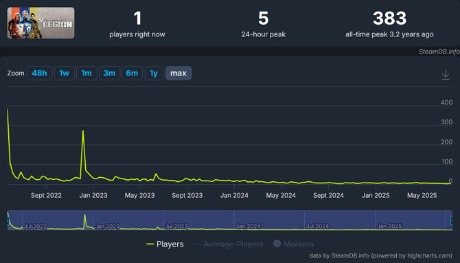 ·虽然是以FPS竞技游戏名作为原型,《穿越火线:军团》并不受玩家追捧,自发布以来就一直人数不足,最大玩家在线只有360人,近期维持在不到10人,这也是官方决定放弃的根本原因。