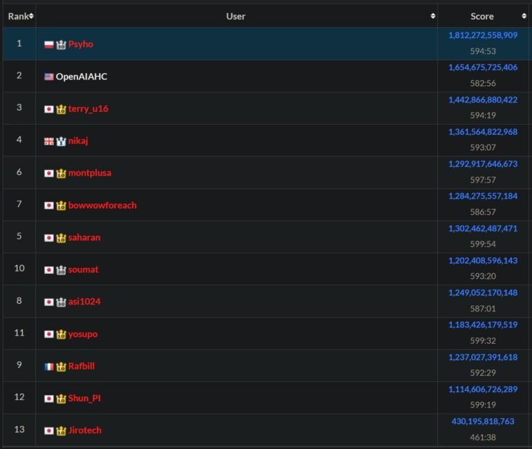 这场被业界称为“编程界人机世纪对决”的特殊赛事,宛如19世纪美国民间传说中铁路工人约翰·亨利与蒸汽钻机较量的另一种重现。参赛者需要在600分钟内解决单一复杂优化问题——没有标准答案,只有不断优化的解决方案。Dębiak最终以1,812亿分险胜AI模型的1,654亿分(领先约9.5%),但正如他在赛后所言,这场胜利可能只是“暂时性的”。