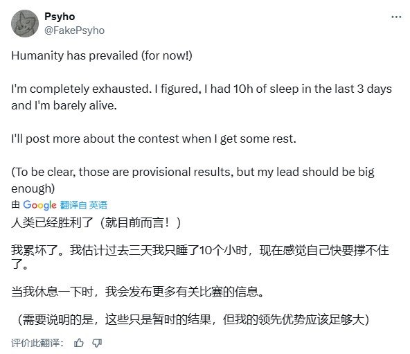 Dębiak的胜利或许标志着人类在算法优化领域的最后堡垒。正如他在社交媒体所言:“说实话,这种关注度让我受宠若惊,没想到编程比赛能引发如此热议。”但当被问及未来是否会有更多人类选手被AI超越时,这位疲惫的冠军只是苦笑道:“至少今晚,我可以安心睡个好觉了。”