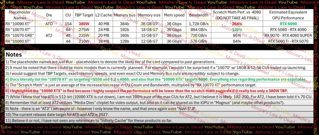 Radeon RX 10900 XT:154个计算单元,36GB GDDR7 显存,384位宽,目标为RTX 6090